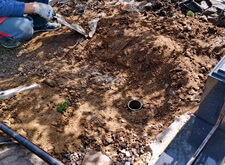 Далее приступаем к установке подставки памятника. После того, как она была возвращена на своё место, размечаем цветник. Параллельно работаем с периметром могилы: по краю пускаем металлическую планку, которая послужит границей брусчатки.